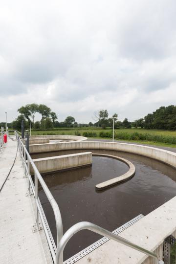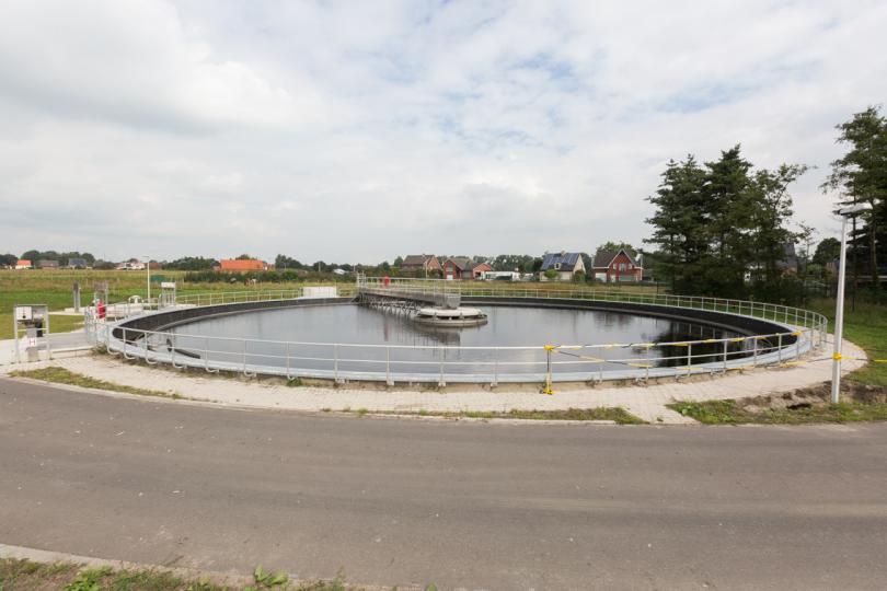 De bestaande nabezinktank werd voorzien van verhoogde wanden en binnenwanden en uitgebreid met een drijflaatput. Op het terrein werden ook een laagspanningsgebouw en een hoogspanningscabine opgetrokken. De bestaande wegenis werd aangepast aan de gewijzigde inrichting van het RWZI. De procesleidingen en rioleringen op het terrein werden eveneens vernieuwd en uitgebreid.